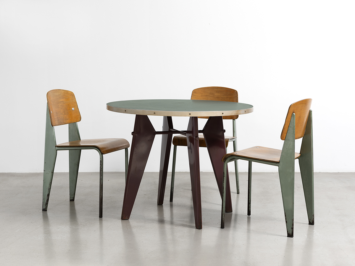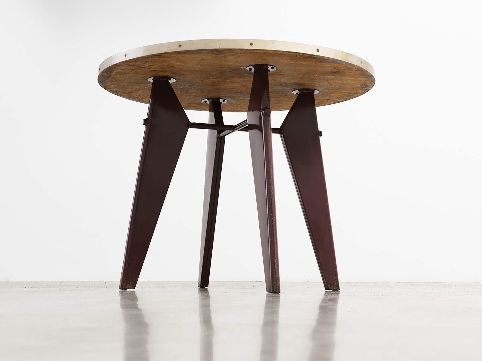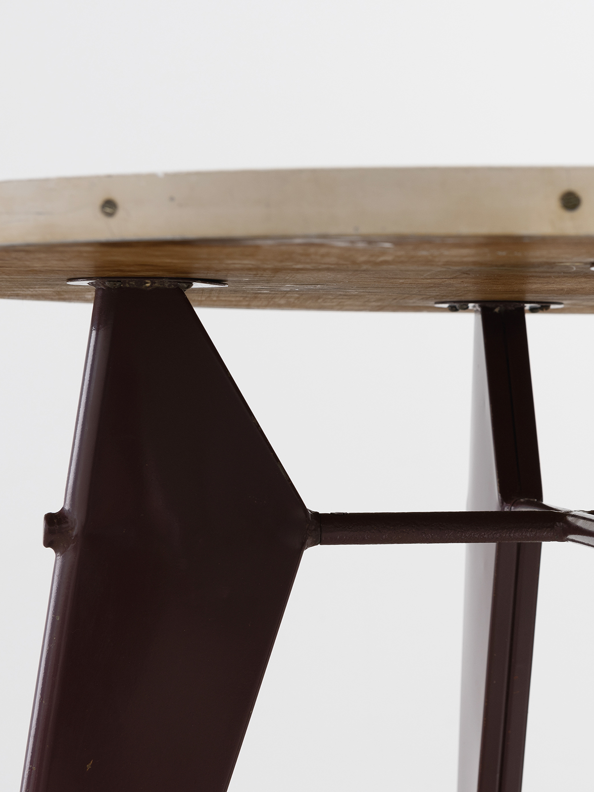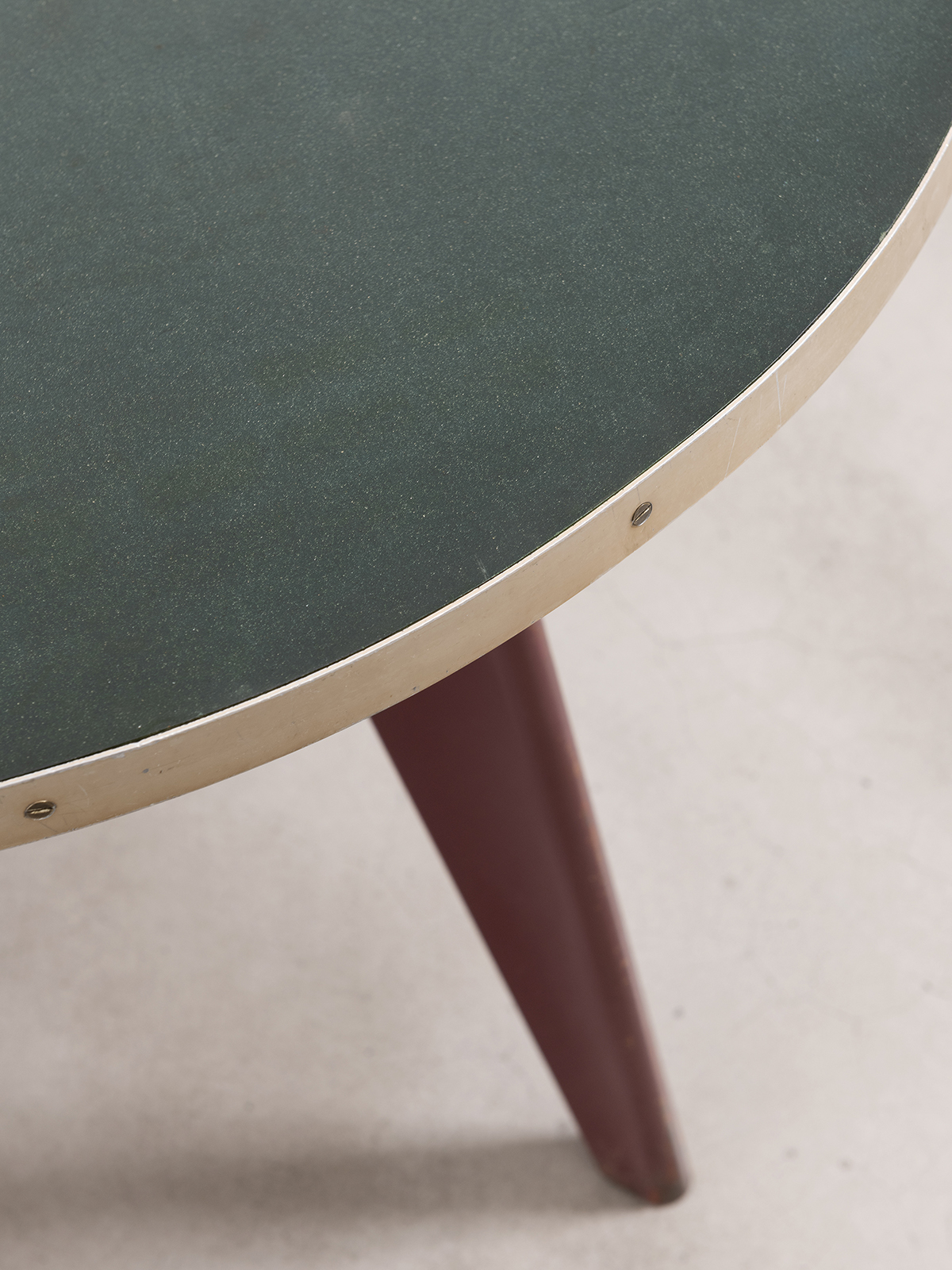 Guéridon Cafétéria démontable, 1950Tôle d'acier pliée, tube d'acier, bulgomme et aluminium