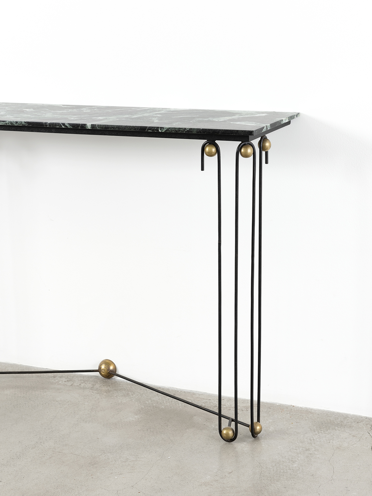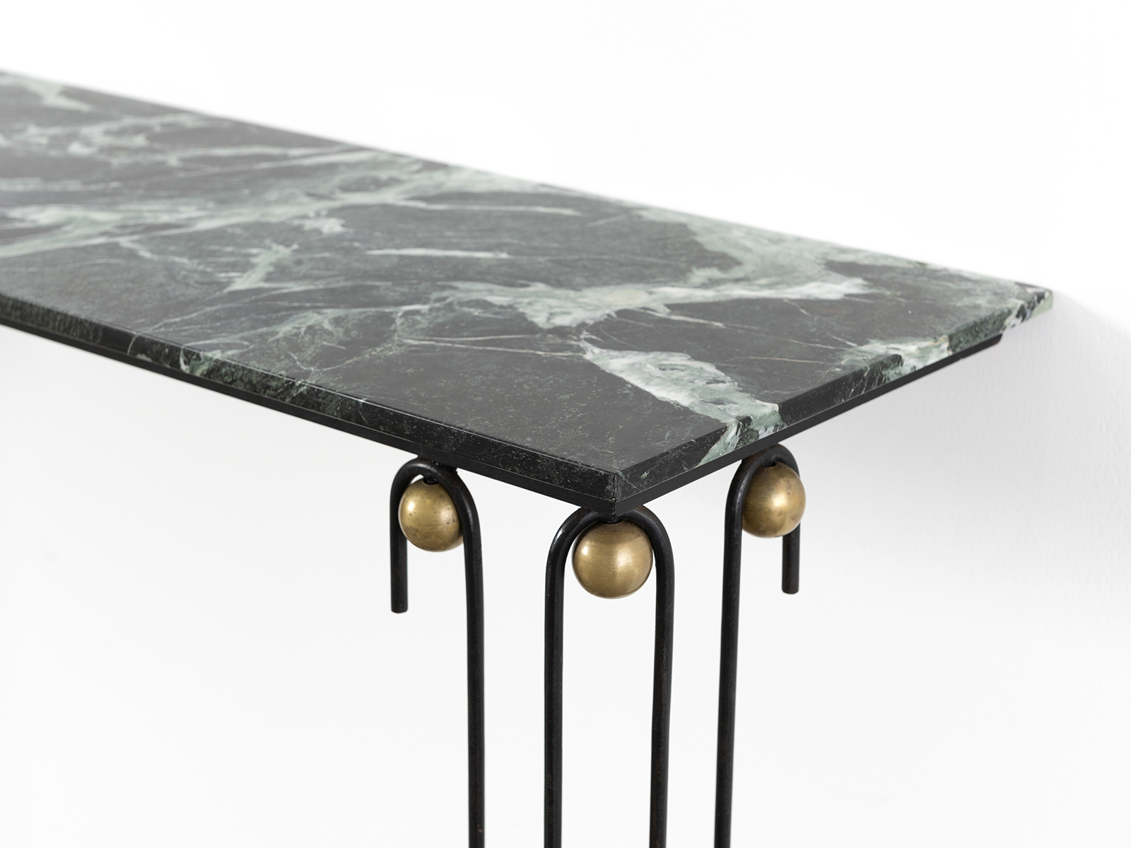 Console Petites boules, ca. 1950Métal peint, laiton et marbre