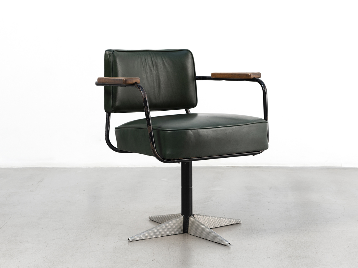 After first working as a blacksmith, Jean Prouvé discovered electric welding and diverse production techniques that he applied to sheet steel, a material that enabled him to conceive "hollow sections". The use of this material was to be found in most of the furnishings he designed. From the 1930s onwards, Jean Prouvé immediately asserted the peculiarity of his approach: the mass-producing of furniture on industrial machinery.