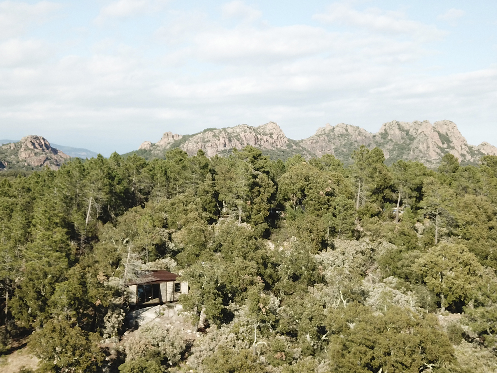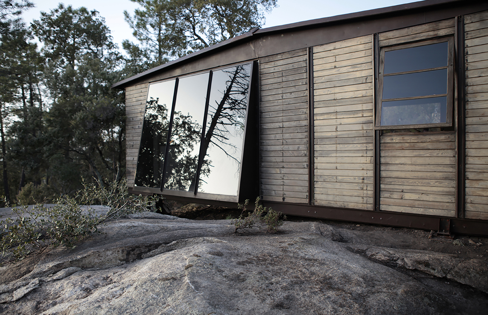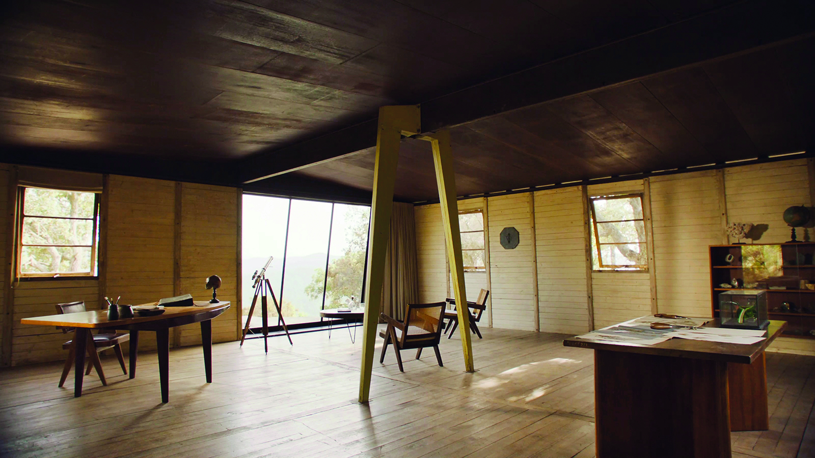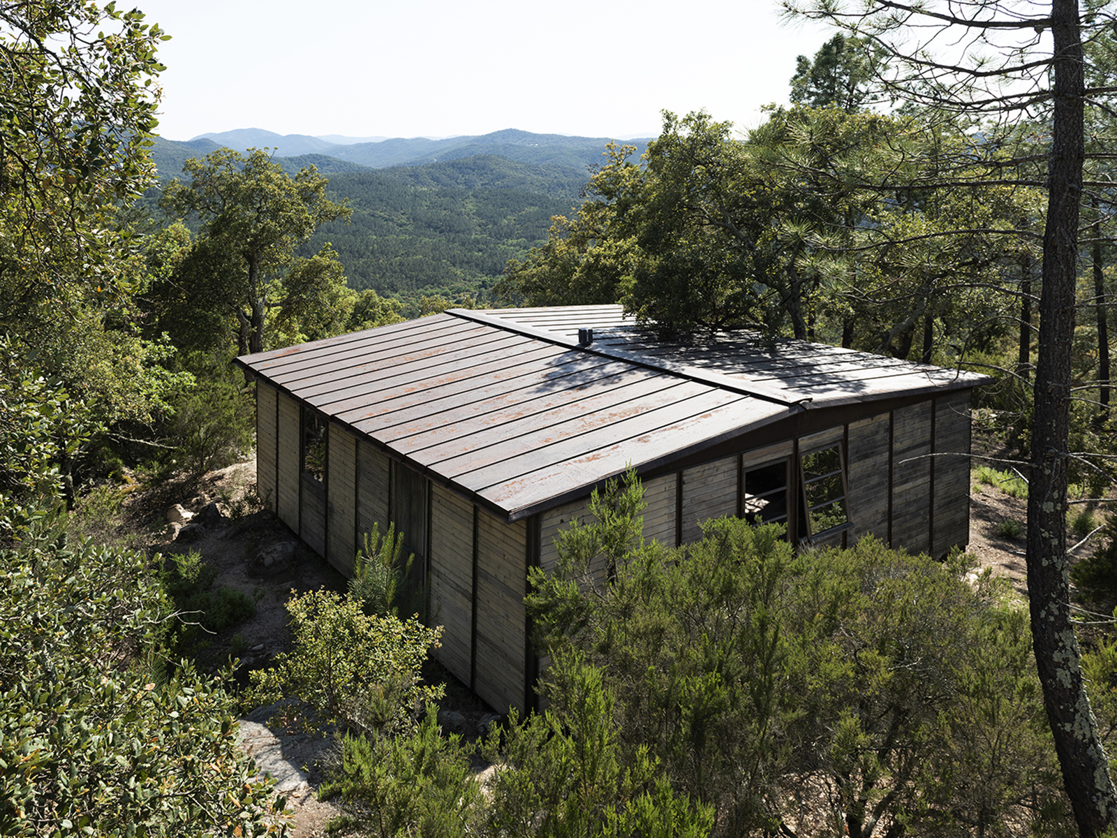 In 1944–45, after meticulous transposition of Prouvé’s construction methods to family housing, a number of the 8x8 demountable houses were produced, with improvements aimed at greater comfort. The load-bearing structure was made entirely of bent sheet steel, as were the floor joists and the roof, unusually made of slabs.