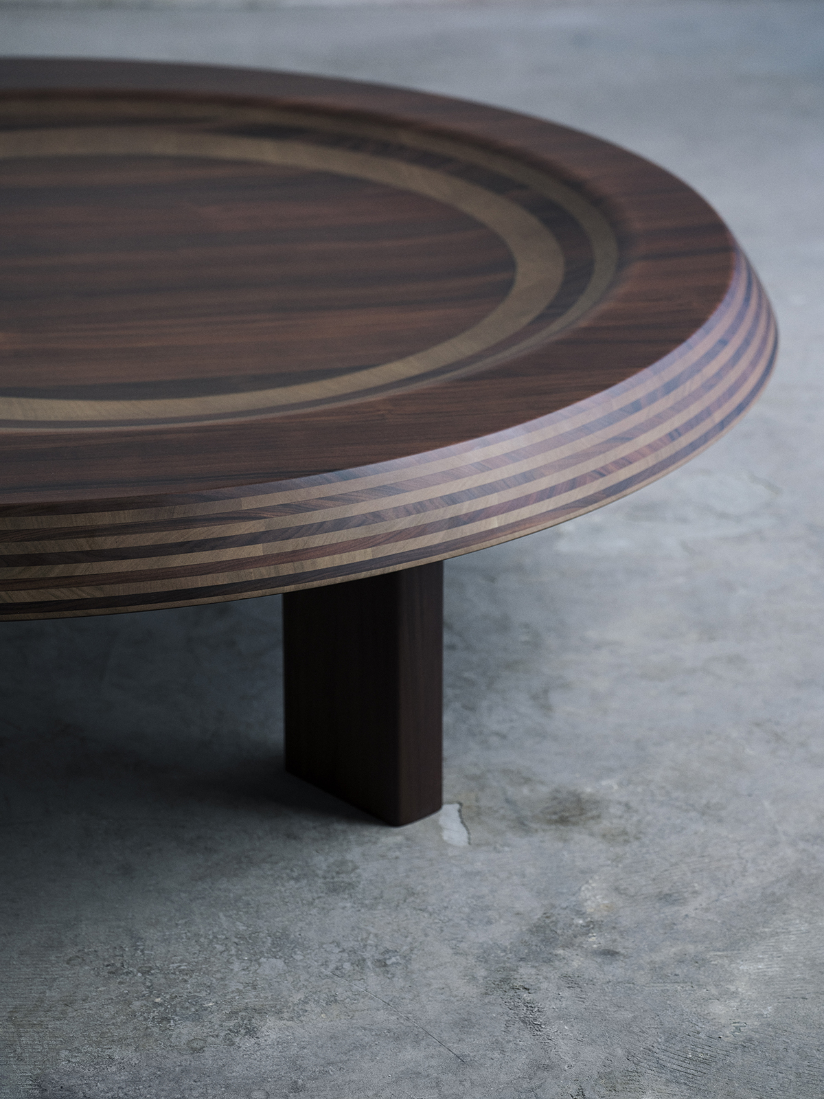Mille-feuilles table, 1963-2025Rosewood and cherrywood