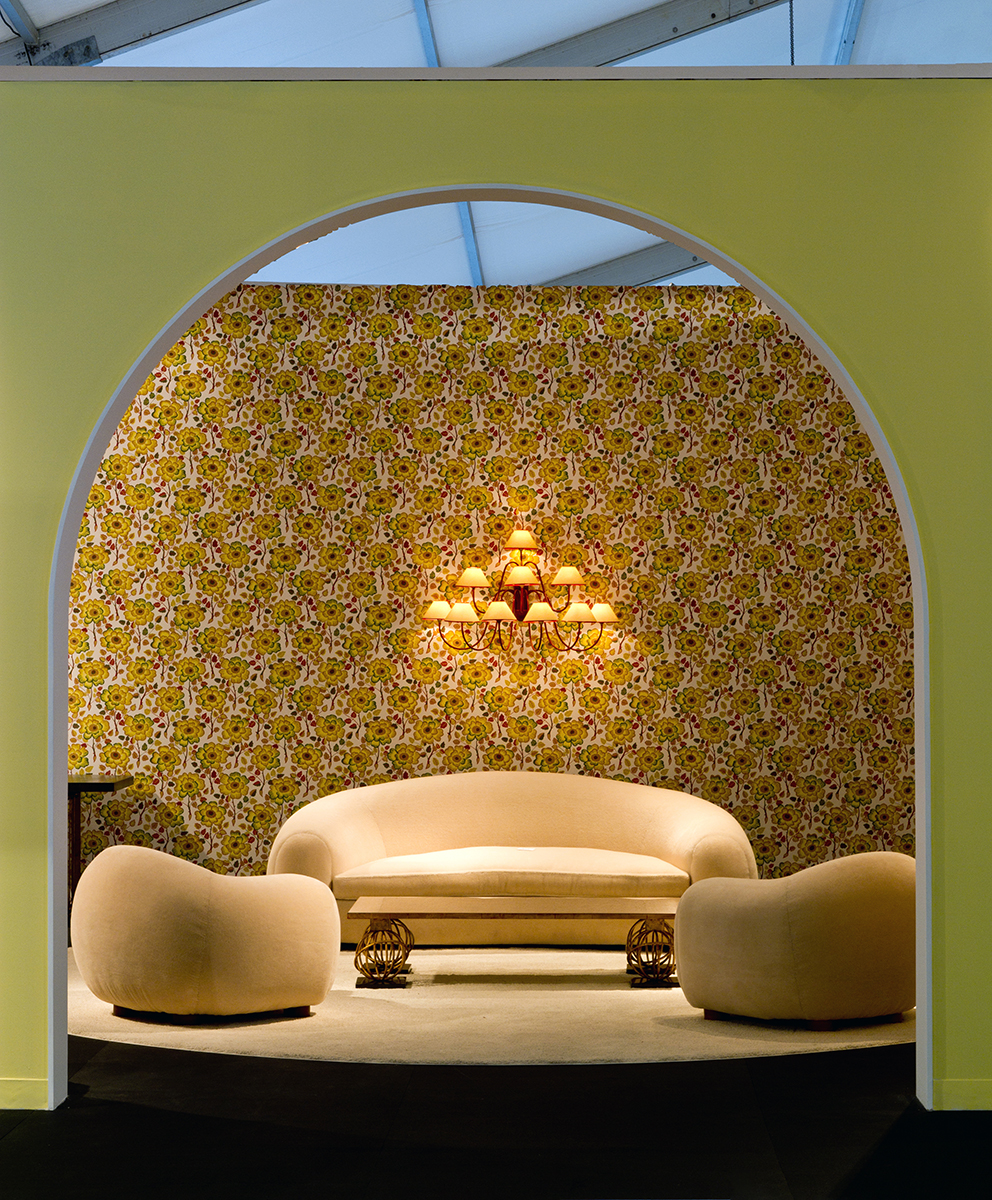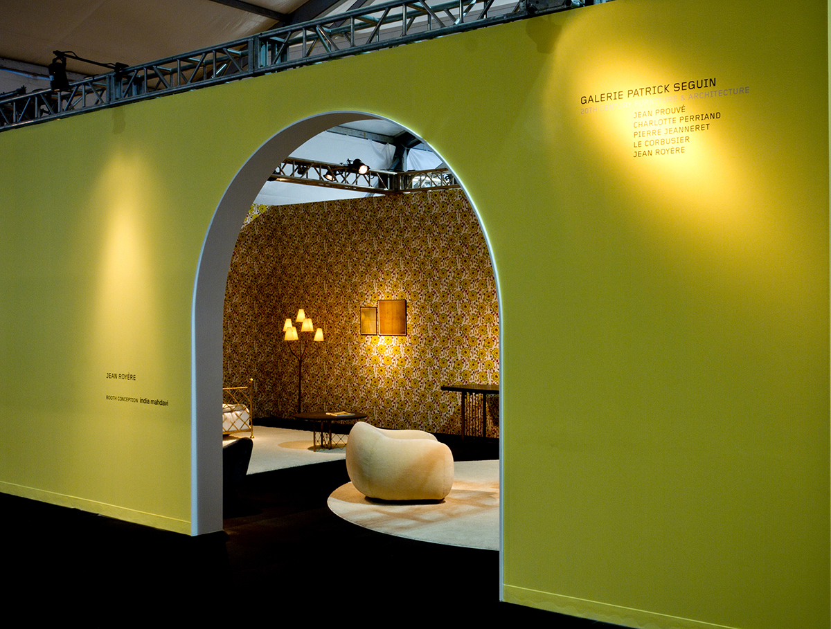 À l’occasion de Design Miami/ 2010, la Galerie Patrick Seguin est heureuse de présenter un stand entièrement dédié à JEAN ROYÈRE (1902-1981), avec une scénographie de l’exposition par India Mahdavi. Afin de créer un stand à l’image de Royère et de sa contribution au design, la Galerie Patrick Seguin a fait appel à l’architecte et designer India Mahdavi, avec qui elle a déjà collaboré, notamment sur l’exposition Jean Royère organisée par la Galerie Patrick Seguin et la Galerie Jacques Lacoste à la Sonnabend Gallery à New York en mars 2008. Le concept du stand de India Mahdavi s’inspire des oeuvres mêmes de Royère. « La mise en scène de cette exposition est une abstraction des décors de Jean Royère. L’utilisation du langage de Royère se retrouve dans les couleurs, les traitements muraux (peinture ou tissus Svenkst aux motifs naïfs), les tapis aux formes organiques, et aussi dans la gamme de coloris si particulière. Il s’agit de présenter les plus belles pièces de Jean Royère dans un univers sublimé », précise l’architecte. Parmis les oeuvres presentées à Design Miami/ 2010, les visiteurs pourront admirer le canapé et les fauteuils “Ours Polaire “ (1949). en tissu de laine, structure et pieds en bois, la Table “Sphère“ (1939), en métal doré et marbre noir ainsi que Table (1954-55), en marqueterie de paille et laiton, qui ajouteront au stand une véritable touche d’élégance.