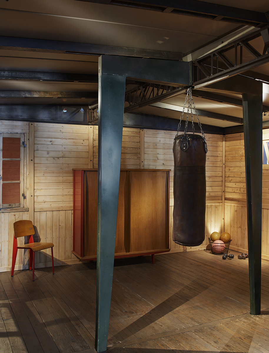 The gallery will present a JEAN PROUVÉ 6×6 Demountable House, 1944, outfitted as a welcoming fitness room and equipped with a variety of activities from boxing to yoga and meditation. The space takes on a new role while preserving its distinct identity put forward by the bent sheet steel compass, and once again Prouvé’s architecture renders itself entirely adaptable to present-day amenities.
