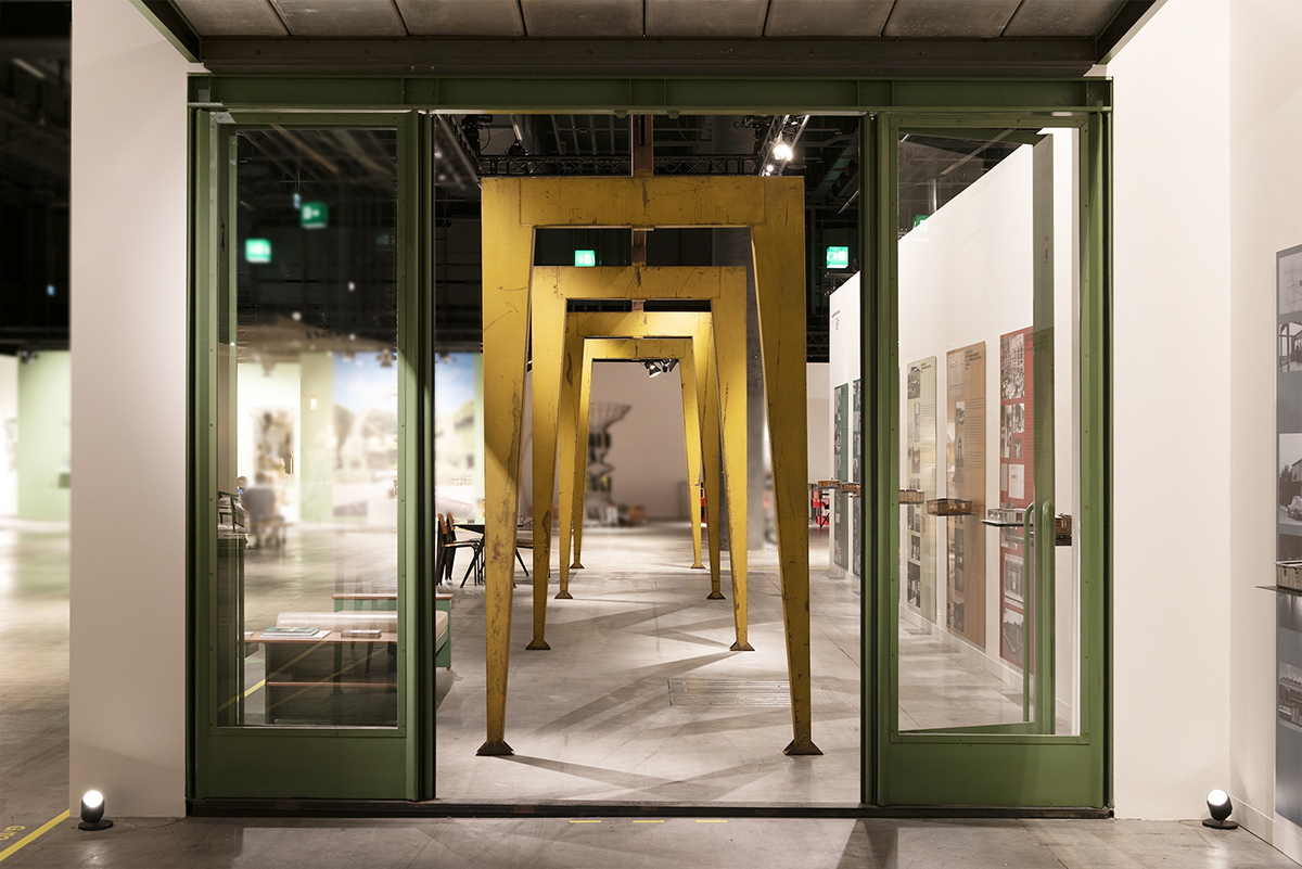 The reconstruction will include the impressive canopy, the glazed double entrance door, as well as four majestic portal frames, which will stand proud. This installation is completed by an information wall presenting nine other constructions by Jean Prouvé, as well as iconic pieces of his furniture.