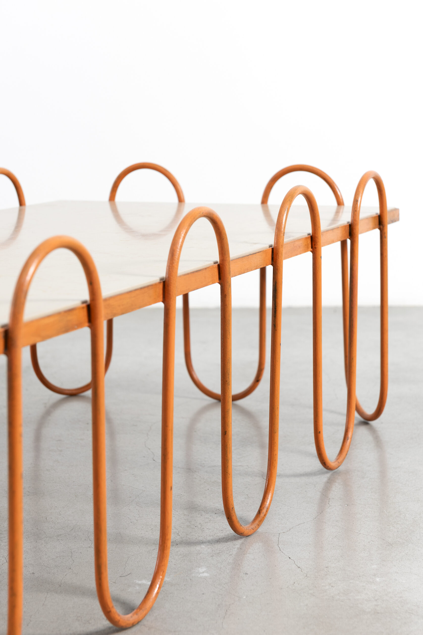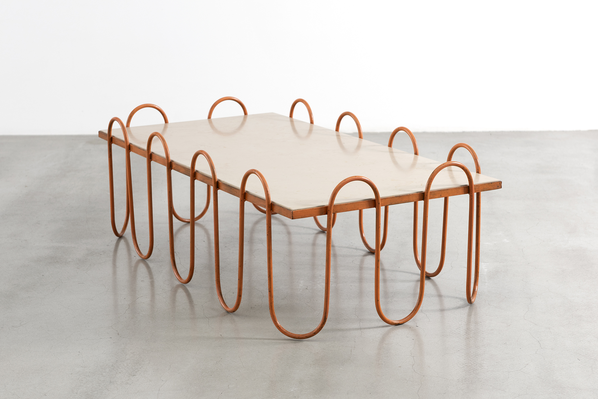 Combining creativity and rigor, Jean Royère’s creations are as expressive as they are exacting, uniting elegance of form, constructive ingenuity and freedom of inspiration. Among the pieces to be shown, the “Forme Libre” table fully embodies this approach: its large, sinuous tabletop breaks absolutely with the classical designs of his day, floating like a wave over three solid, cylindrical legs.