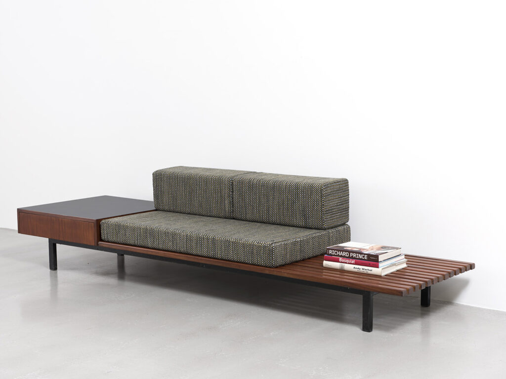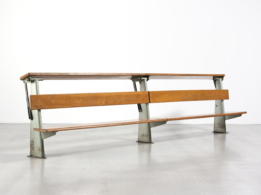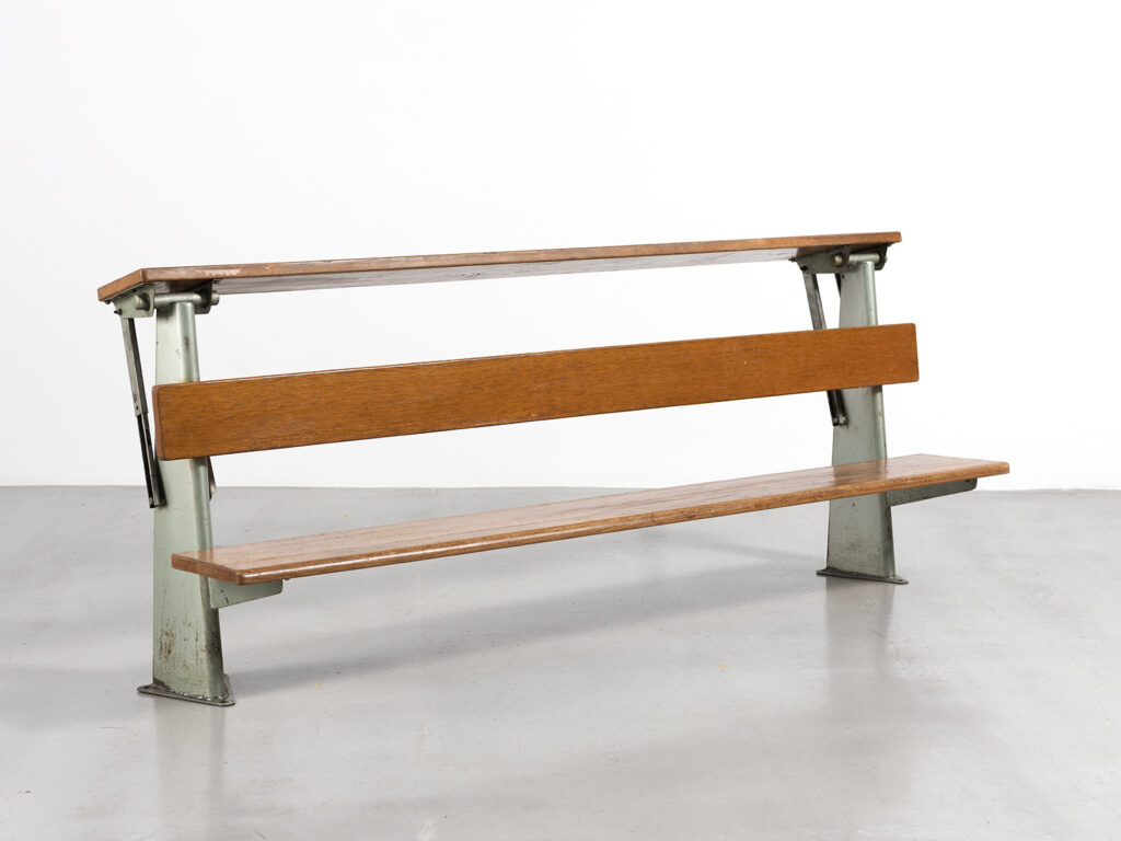Lecture hall bench with pivoting writing desk, ca. 1953