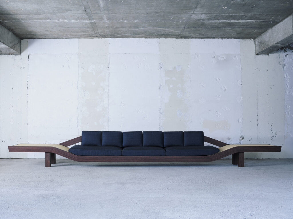Sofa for the Japanese Ambassador’s residence in Paris, 1967-2025Rosewood, cane and Jim Thomson Thai silk Limited edition of 8