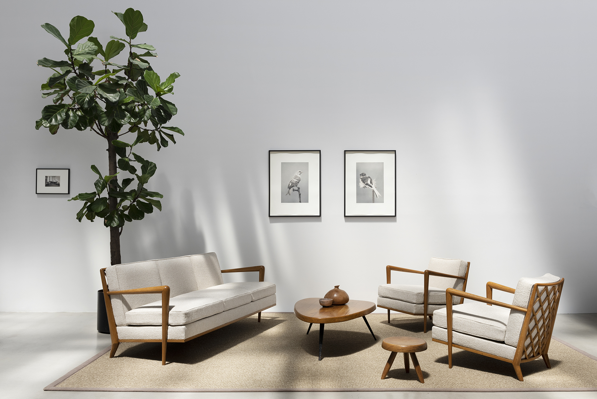The elegant pattern that first appeared in Jean Royère’s design vocabulary in 1938 for the furnishing of a living room in a Belgian private home rapidly became one of the designer’s most iconic motifs. The pattern was mostly used for the furnishing of bourgeois interiors where he took on the challenge of combining antique furniture together with classical interior arrangements.