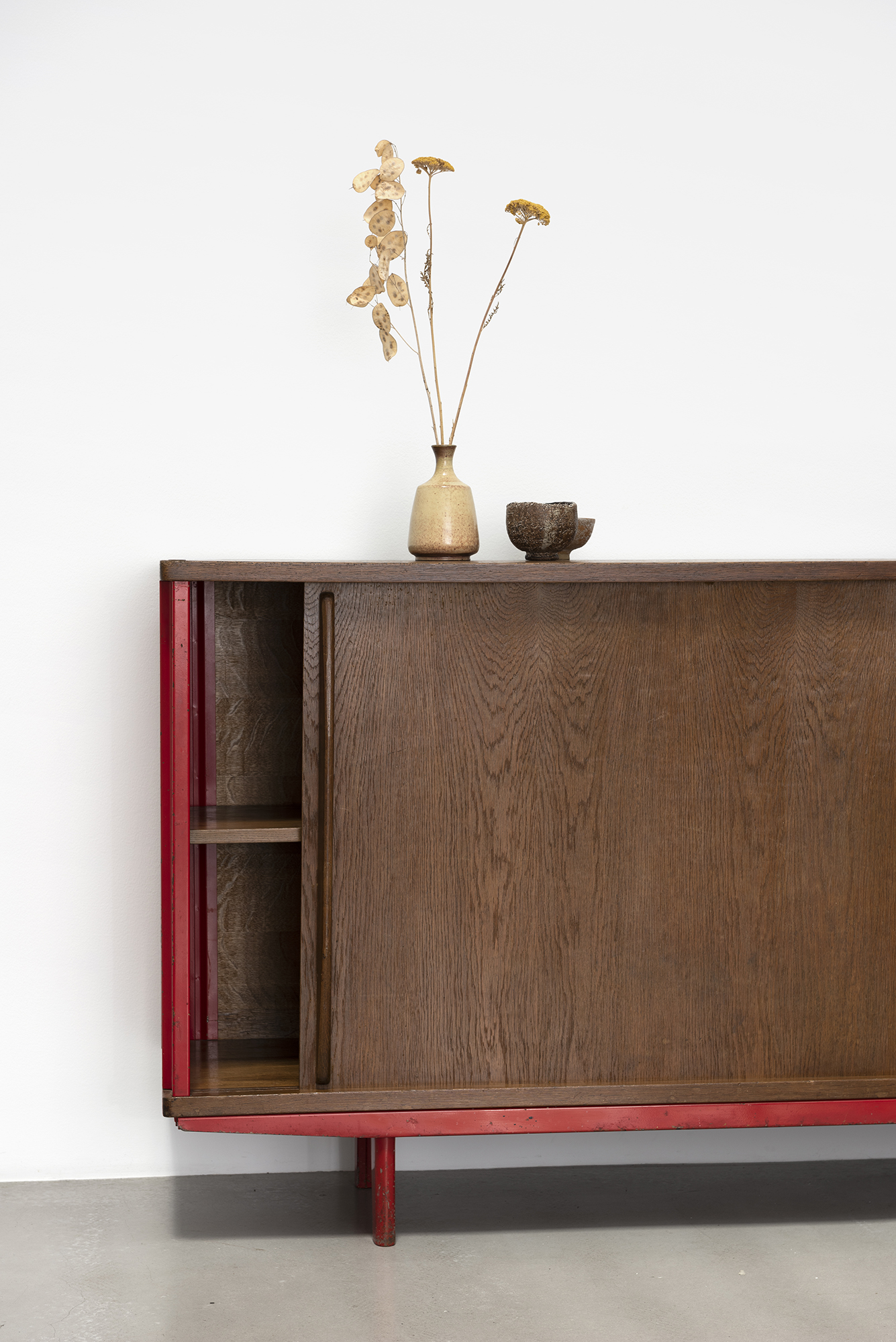 The wood and metal sideboards that emerged from the ATELIERS JEAN PROUVÉ in the 1930s were designed as sets of closed shelves with sliding doors.