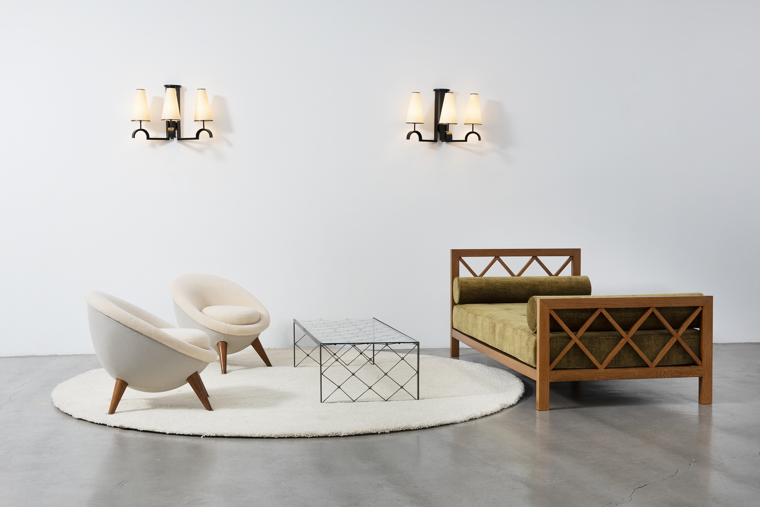 Dans une élégante scénographie, la galerie exposera des meubles et luminaires de JEAN ROYÈRE, dont notamment une rare et délicate table basse Tour Eiffel et une paire de ravissants fauteuils Œuf, qui témoignent de la grande créativité de leur auteur et de son univers empreint d’élégance et de poésie.