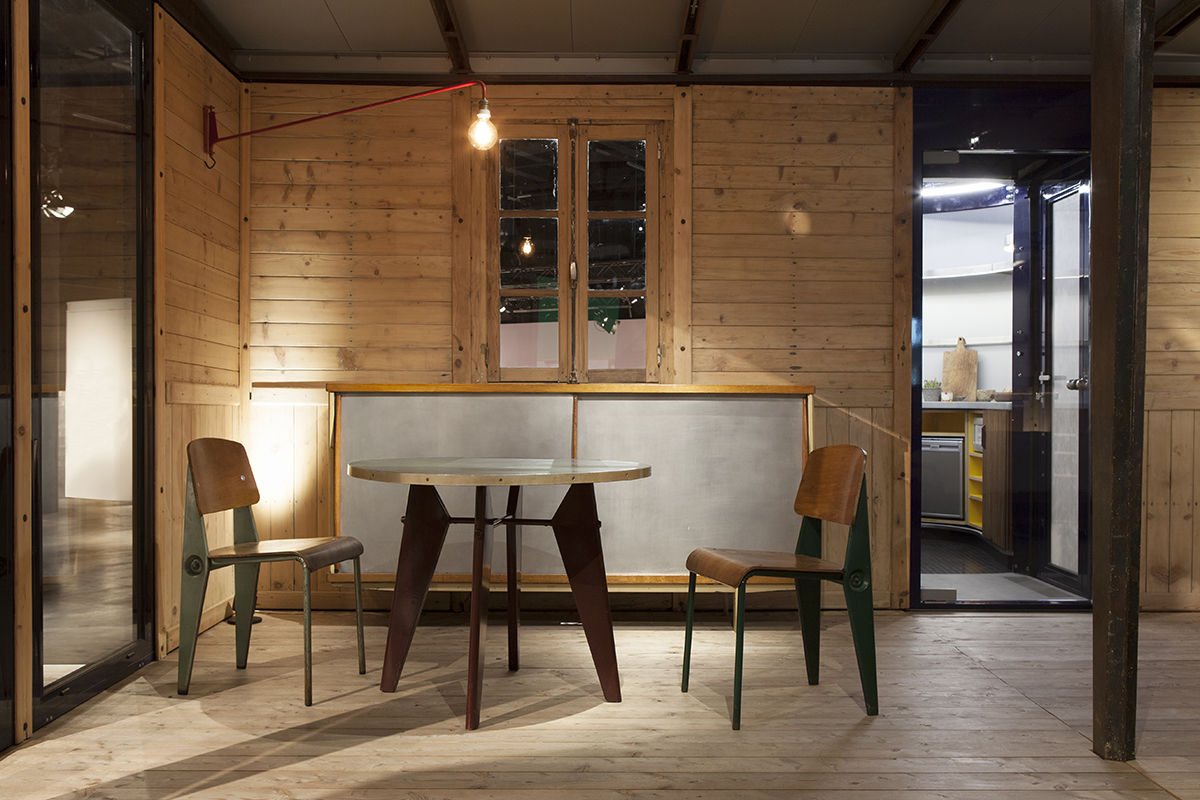 L’adaptation de la Maison démontable 6×6 de JEAN PROUVÉ par Rogers Stirk Harbour + Partners se base sur les plans d’origine en ajoutant des installations adaptées à la vie moderne, comme des annexes pour salle de bains et pour cuisine, ainsi qu’une série de chariots techniques fournissant de l’eau chaude et de l’électricité solaire. Le fait de mettre les modules à l’extérieur maintient la flexibilité de l’aménagement intérieur d’origine, et les chariots garantissent à la maison une alimentation indépendante en eau et en énergie, de manière à ce qu’elle puisse être installée dans n’importe quel environnement. La conception de RSHP remplace six des panneaux de bois d’origine pour fournir une jonction interne avec chaque module, et une entrée de quatre panneaux vitrés qui apportent de la lumière dans le principal espace à vivre et s’ouvrent sur un ponton extérieur. Celui-ci est commandée par un système à contrepoids de manière à ce qu’on puisse l’abaisser pour l’utiliser comme espace externe, ou le relever pour qu’il joue un rôle de protection du vitrage dans des conditions météorologiques extrêmes. Conformément à la conception d’origine, tous les composants peuvent être assemblés et démontés facilement à la main sur place, et l’on peut réaliser différentes configurations de panneaux susceptibles de convenir à des emplacements spécifiques.