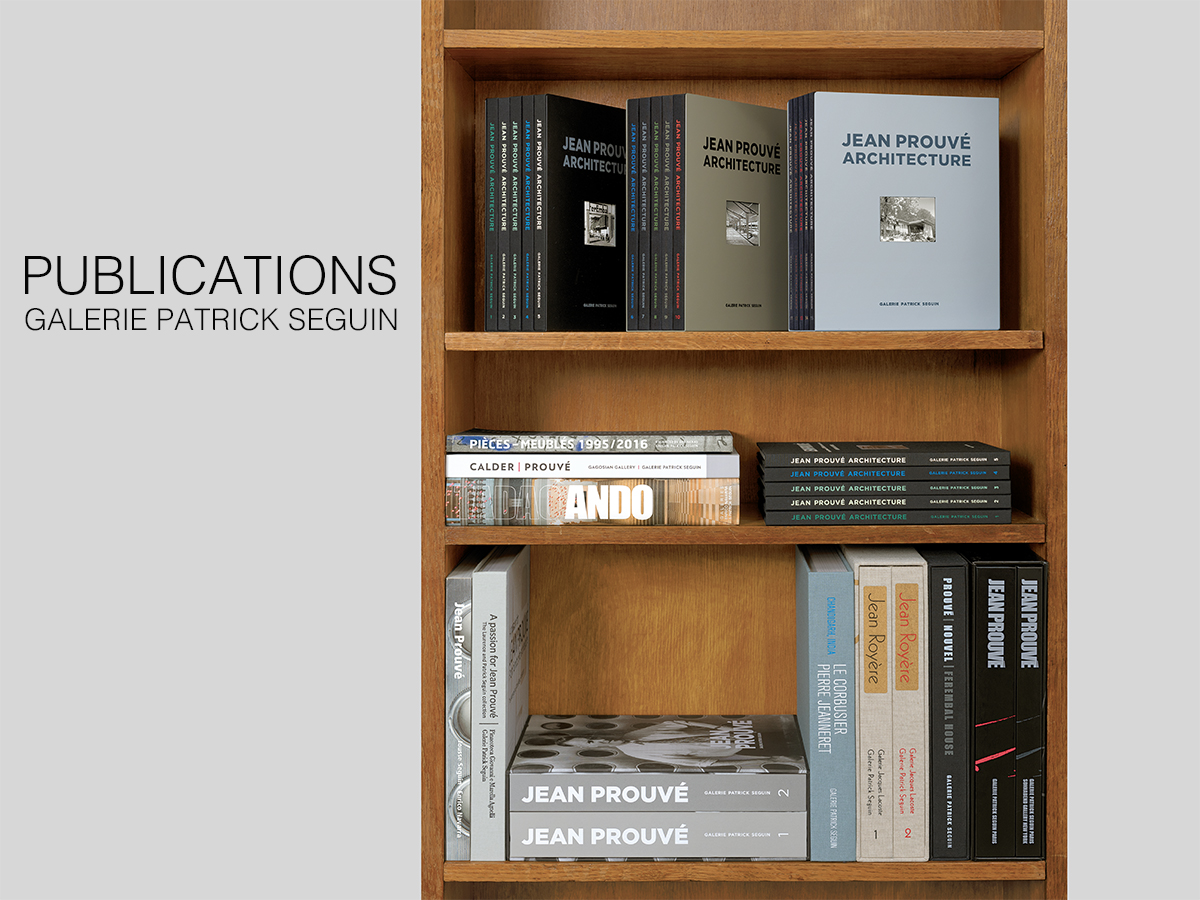 Depuis son ouverture en 1989, la Galerie Patrick Seguin mène un travail rigoureux pour faire connaître et revaloriser les maisons démontables de Jean Prouvé. La galerie détient aujourd’hui la plus importante collection d’architectures de Prouvé avec 19 structures allant de 16 à 190 m2 et a entrepris un travail rigoureux pour faire connaître ces architectures à travers des expositions d’envergure dans des institutions internationales telles que le MoMa à New York, Design Miami/Basel, la Biennale de Venise et la Pinacoteca Giovanni e Marella Agnelli à Turin. En parallèle, la galerie a développé une ligne éditoriale d’ouvrages monographiques qui accompagnent les expositions. En 2015, la Galerie Patrick Seguin publie une série de 3 coffrets comprenant 5 monographies, dédiées chacune à une architecture démontable de Jean Prouvé. Au total, 15 monographies seront publiées au courant de l’année 2015-2016, illustrées avec des photographies d’époque et contemporaines.