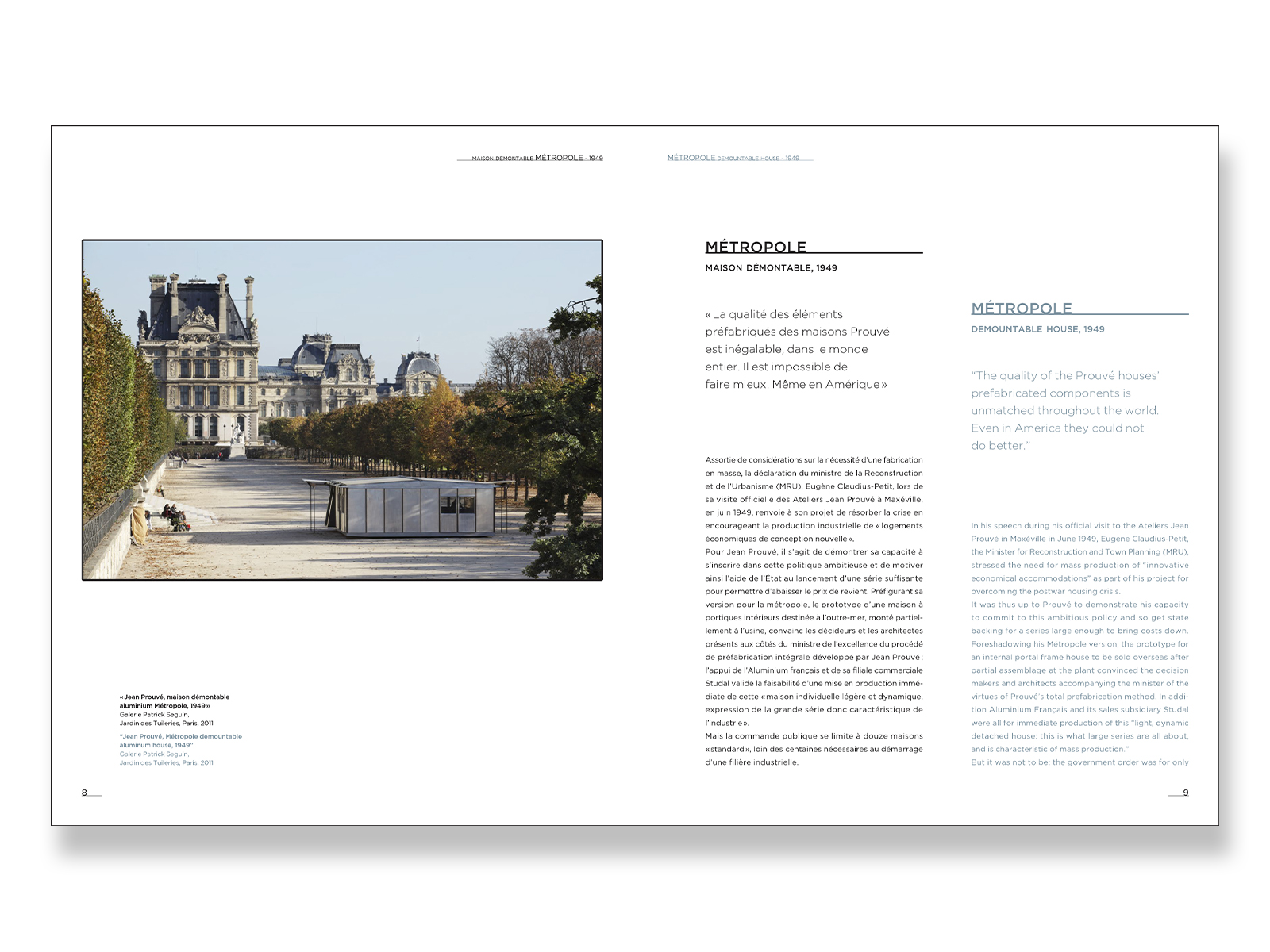 Entièrement démontable, cette architecture préfabriquée, structurée d’acier et carrossée d’aluminium, exploite les possibilités d’adaptation offertes par le procédé à portique axial breveté par Prouvé en 1939. Malgré toute son ingéniosité, la maison Métropole ne fera l’objet d’aucune commande.