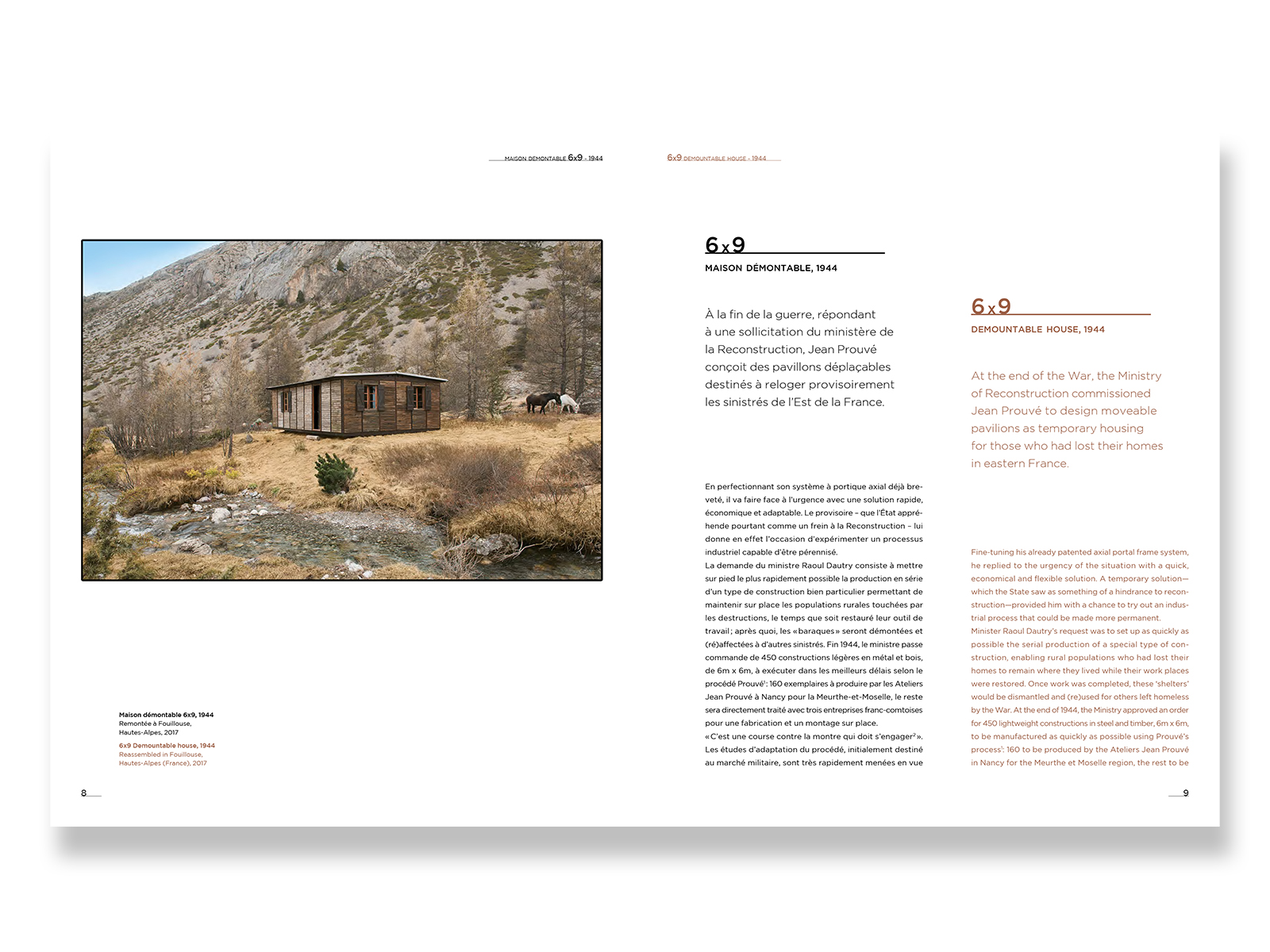 Sollicité par le ministère de la Reconstruction à la fin de la guerre, Jean Prouvé conçoit des pavillons démontables et transportables destinés à reloger provisoirement les sinistrés de l’Est de la France. En perfectionnant son système à portique axial breveté en 1939, il répond à l’urgence de la situation en proposant une solution rapide, économique et adaptable : « C’est une course contre la montre qui doit s’engager ». L’architecture provisoire lui donne notamment l’occasion d’expérimenter un processus industriel capable d’être pérennisé.